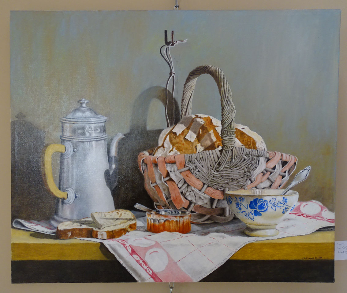 Pour la technique peinture huile/acrylique, le 1er prix est décerné à Pierrick Delsart, le 2e prix à Marie-France Bussy et le 3e prix est attribué au vauverdois, Georges Devaux pour son tableau La cafetière.