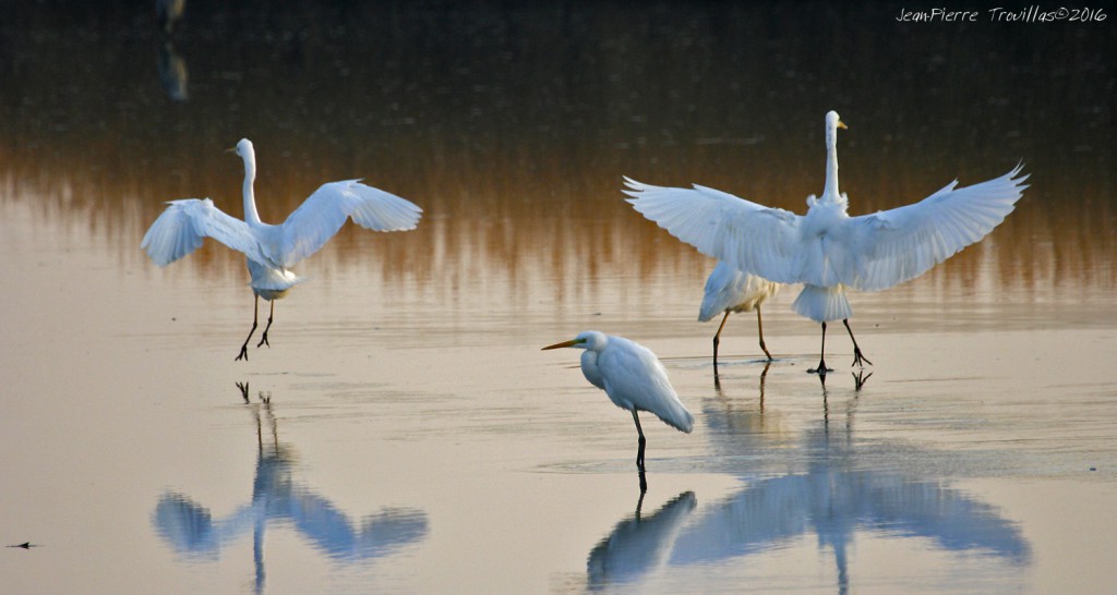 La taille de la grande aigrette est similaire à celle du héron cendré, ce qui permet de la distinguer des autres ardéidés de couleur blanche. L’oiseau est svelte et élancé et le contempler lorsqu’il pêche est toujours fascinant tellement il est adroit et économe en énergie.